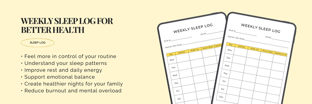 This Weekly Sleep Log Printable is a simple, calming tool designed to help busy moms, parents, and families track sleep patterns, improve bedtime routines, and feel more rested and emotionally balanced.